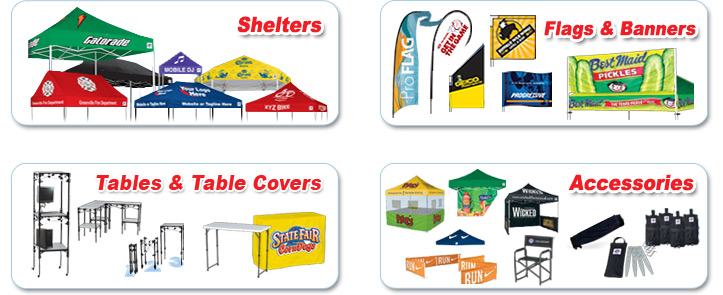 | Custom Graphics can be applied to most of our products, including our Instant Shelters®, Shelter Accessories, Table Covers, Flags, Directors Chairs and much more! |